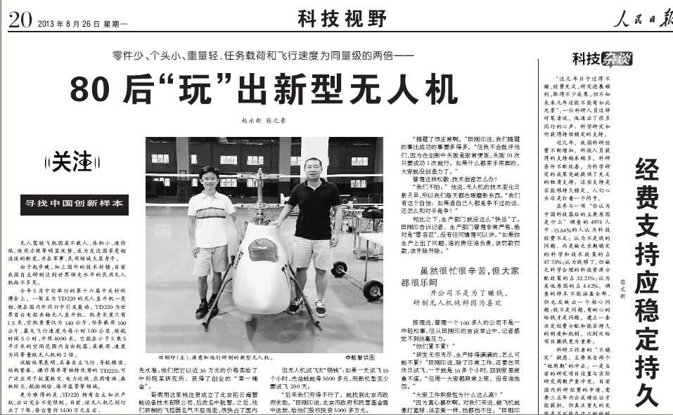 【人民日报】80后“玩”出新型无人机