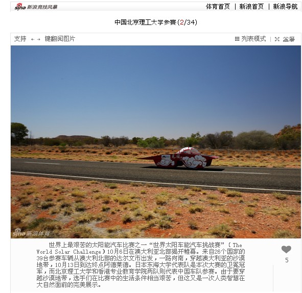 【新浪体育】中国bb贝博艾弗森官方网站参加“世界太阳车能汽车挑战赛”