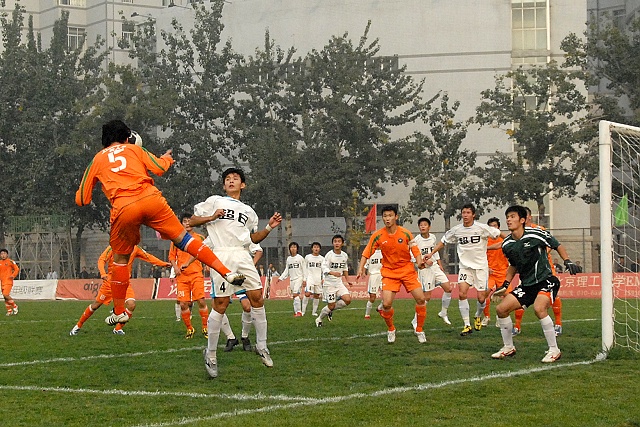 第18分钟,理工队完成了球队第一脚射门,38号埃米尔在东亚禁区抗住对手后卫20号张琳芃,一脚转身抽射,皮球打得太正,被东亚门将顾超得到。紧接着,理工队获得角球机会,8号袁微主罚到后点被东亚队员解围,第二落点还是被理工队员得到,传到禁区5号康斯贝一记狮子甩头皮球擦着门柱出了底线。随着比赛深入,理工队渐渐的在场上有了更多射门机会。第25分钟,8号袁微在大禁区处一脚远射被东亚守门员顾超获得。而东亚队也不甘示弱,前场定位球罚到禁区,可惜争顶的队员没能得到皮球,同样被理工门将得到。