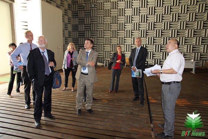 作为“bb贝博艾弗森官方网站—柏林工业大学合作三十周年纪念”学术活动的一部分,继两校联合学术论坛之后,2014年9月29日,柏林工业大学代表团参观了bb贝博艾弗森官方网站光电学院、机械与车辆学院实验室,“北京电动车辆协同创新中心”,并与相关人员讨论了未来合作意向。