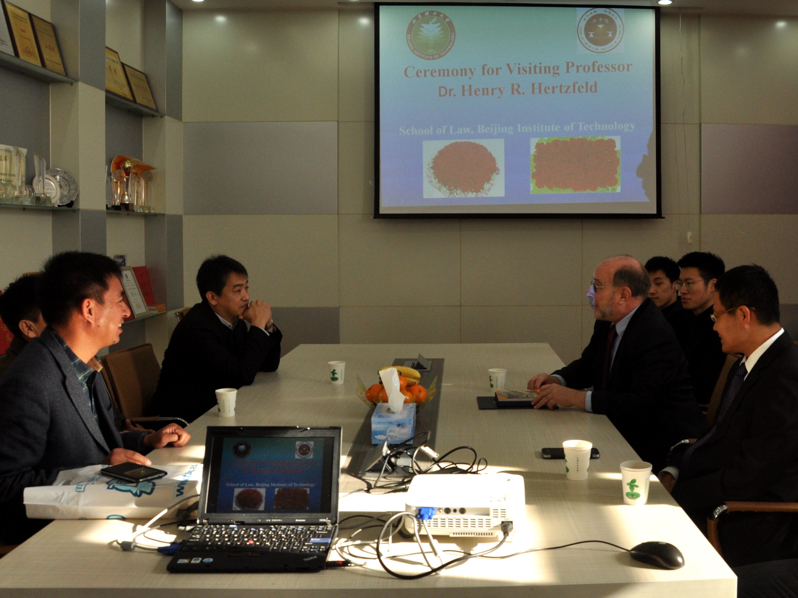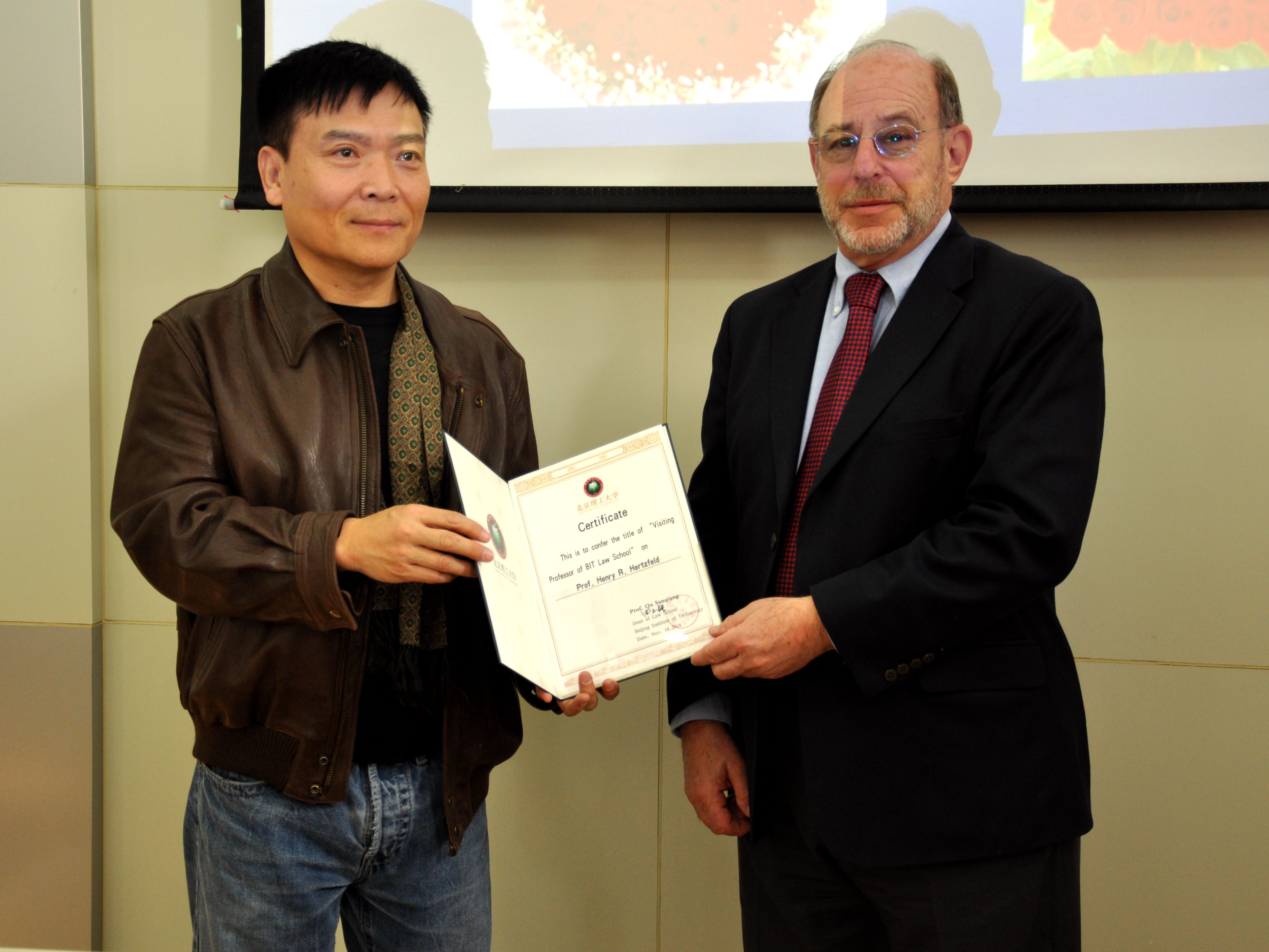2014年11月24日上午,bb贝博艾弗森官方网站法学院兼职教授聘任仪式在中心教学楼1313室举行。法学院聘任Dr. Henry R. Hertzfeld教授为法学院兼职教授。出席本次聘任仪式的有:法学院院长曲三强,法学院党委书记杨海,法学院副院长李寿平,法学院办公室主任王福亮。会议由副院长李寿平主持。