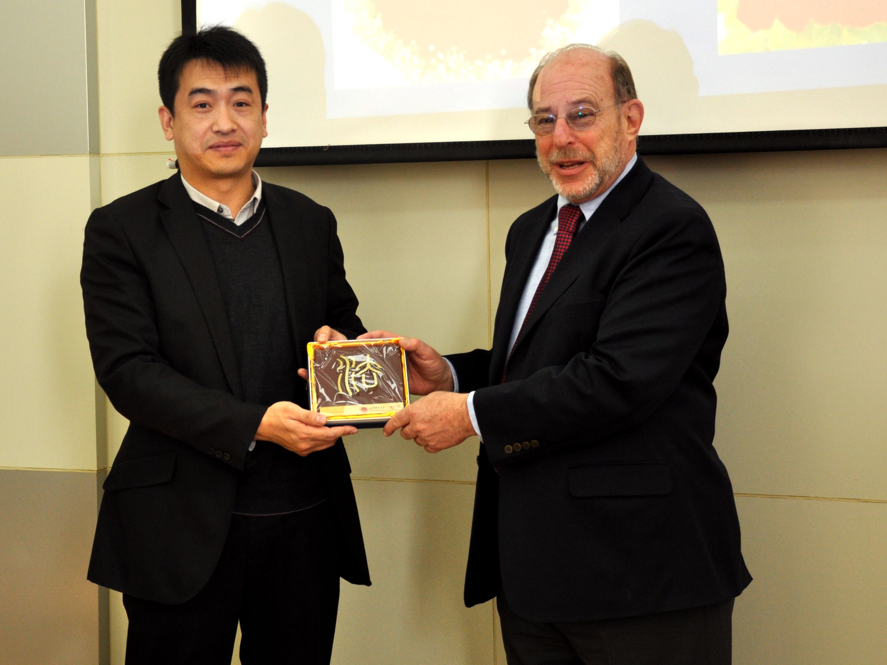 法学院党委书记杨海代表法学院向Dr. Henry R. Hertzfeld教授赠送了具有bb贝博法学院特色的礼物,并表示Dr. Henry R. Hertzfeld教授具有深厚理论研究功底和丰富的实践经验,是学校师资力量的宝贵财富,希望能与法学院教师共同研讨法律问题,对法学专业同学进行专业上的指导和帮助。