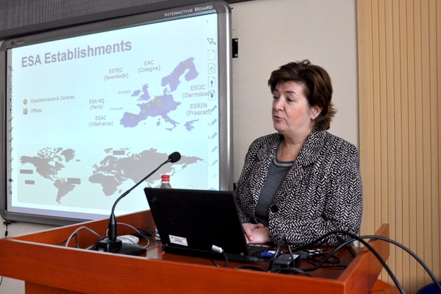 Tanja教授以Europe & Space: an overview为题,从欧洲太空局(European Space Agency)的发展历史、建立、组织结构、大会成员国、活动领域、欧空局与欧盟的关系以及欧洲太空活动面临的关键挑战等方面对其进行了详尽的解说。