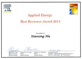 本次大会还对ICAE2013最佳论文、《Applied Energy》杂志20122013年高被引论文和2014年最佳审稿人进行了颁奖,我校协同创新中心何洪文教授课题组于2012年发表的学术论文获得高被引论文奖,孙逢春教授指导的胡晓松博士获得2014年最佳审稿人奖。