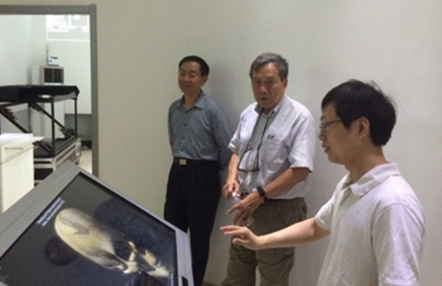 26日上午,杨振寰教授先后参观了参观赵维谦教授实验室与王涌天教授实验室,听取了赵维谦教授、王涌天教授介绍实验室情况与项目进展情况。参观过程中,杨振寰教授体验了实验室自主研发的头盔显示器、手术导航仪以及红外智能交互显示器等设备,并且给予实验室工作高度评价。