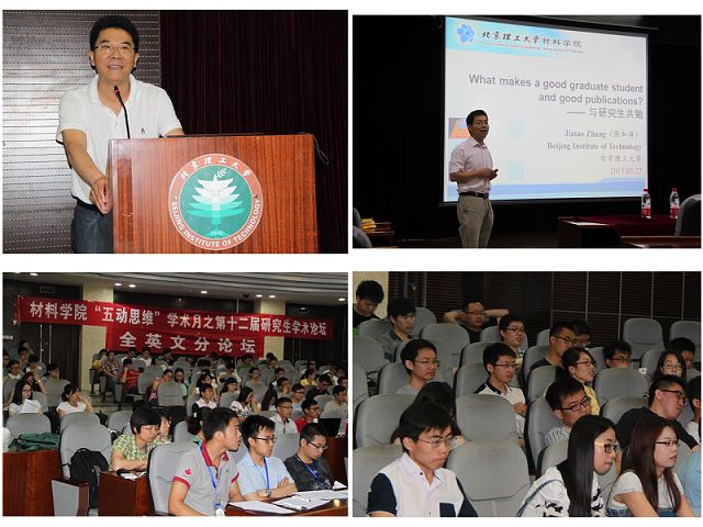 学术论坛在研究生楼101报告厅拉开帷幕,材料学院副院长金海波、团委书记刘艳出席了开幕式。金海波副院长致开幕词,以“把学习当成一种奋斗”为题激励同学们勇攀科研学习高峰。随后,bb贝博艾弗森官方网站首位徐特立特聘教授、材料学院张加涛教授做开坛报告。张老师从努力工作和创造性学习两方面切入谈什么是优秀学生,他结合自身科研与教学经验,就研究生如何选课题、做课题、发表高水平论文进行了精彩的学术报告。最后,张老师引用孔子名言“学而不思则罔,思而不学则殆”与在场研究生共勉,希望同学们在科学研究的过程中有所收获。