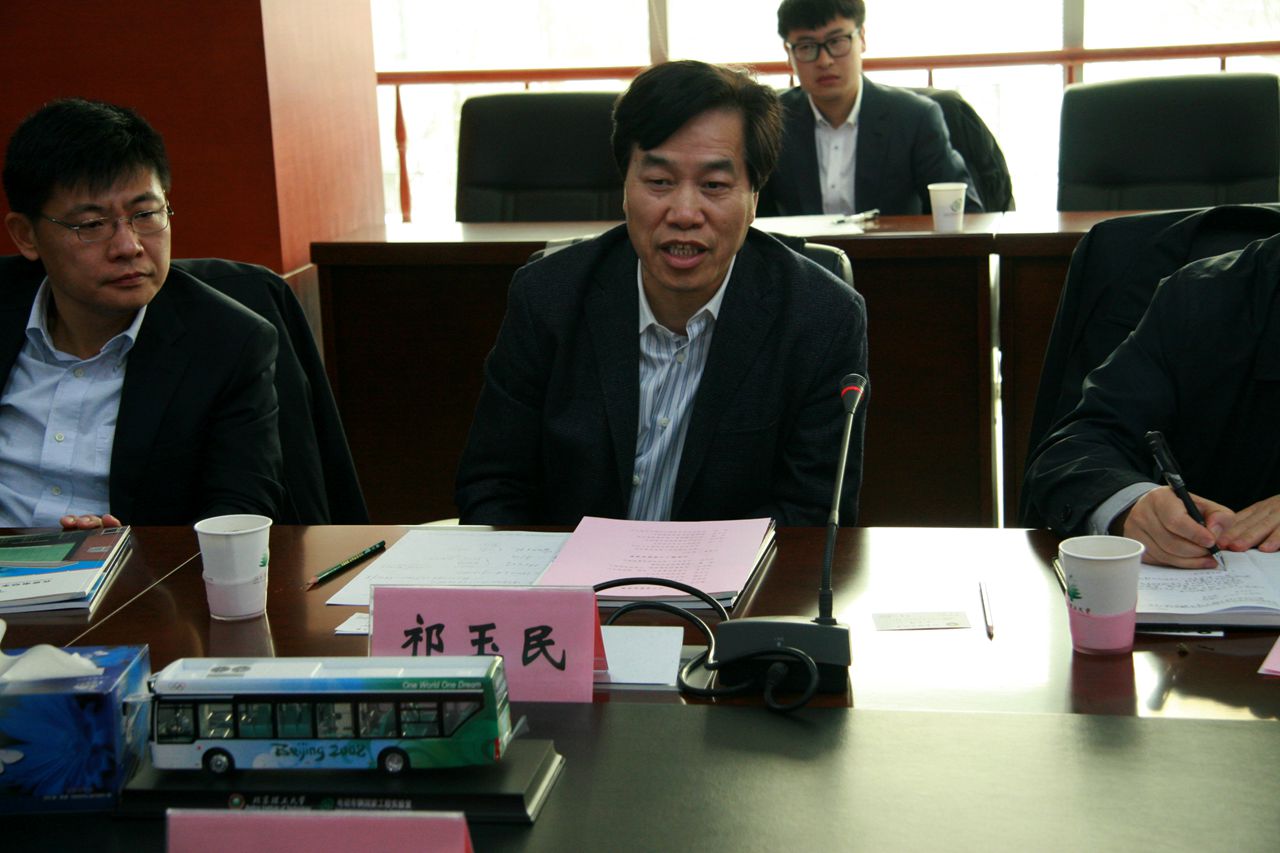 2015年11月25日,辽宁省国资委主任魏举峰、华晨集团董事长祁玉民一行来bb贝博艾弗森官方网站洽谈科技合作。bb贝博艾弗森官方网站副校长、电动车辆国家工程实验室主任孙逢春教授在西山实验区接待了魏举峰、祁玉民一行。