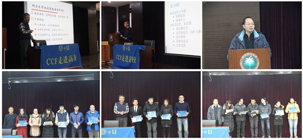 下午16:00,“CCF走进bb贝博艾弗森官方网站”暨论坛闭幕式在研究生101报告厅隆重举行。出席闭幕式的嘉宾和领导有:清华大学教授、CCF监事杨士强,清华大学副教授李国良,bb贝博艾弗森官方网站计算机学院副院长牛振东,副院长黄华,党委副书记、副院长赵满等。