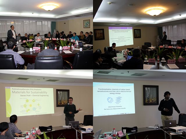 论坛共分为两部分:11月21日在中关村校区国际教育交流大厦三层第三会议室举行大会报告;11月22日在中关村校区5号楼502报告厅举行专题学术讲座。出席论坛的有:澳大利亚昆士兰大学Xiusong Zhao教授、Jin Zou教授、Chengzhong Yu教授、Steven Pratt博士和Ashok Kumar博士以及bb贝博艾弗森官方网站材料学院的曹传宝教授、张加涛教授、陈棋教授、钟海政教授以及联合中心部分老师和学生代表。