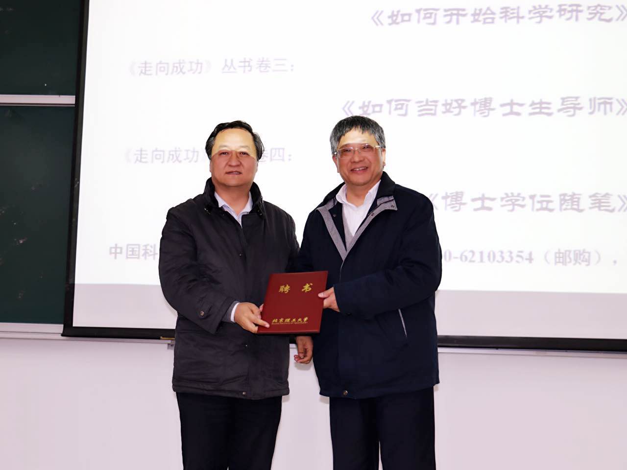 王军政教授为冯长根教授颁发“交叉科学论坛”特邀报告人聘书。指出青年学者代表着学校的未来,希望青年学者们能够借助“交叉科学论坛”平台加强交流与合作;感谢冯教授能在百忙之中抽出时间来为青年学者们指点迷津,将自己30余年从事教学科研的宝贵经验传授给青年学者,让他们少走弯路;感谢张忠廉教授来参加论坛活动,张教授已81岁高龄还细致耐心地指导学生科技创新实践,依然充满热情地工作着,是所有青年学者们的学习榜样,这种兢兢业业的工作态度也是每一个优秀的青年学者都应该具备的。