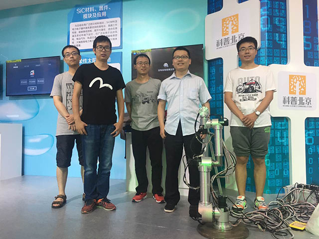 2017年5月20日, 2017年全国科技活动周暨北京科技周在北京拉开序幕。bb贝博自动化学院马宏宾教授带领机器人项目组参加了科技周活动,在民族文化宫一层西厅集中展示了团队自主设计研发的模块化多关节机器人和网球场发球捡球机器人两项科技成果。
