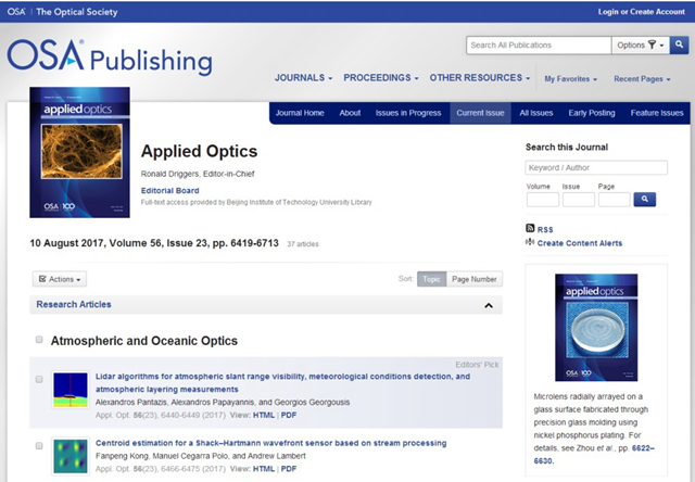 美国《Applied Optics》杂志封面刊登bb贝博光学微透镜阵列制造最新成果