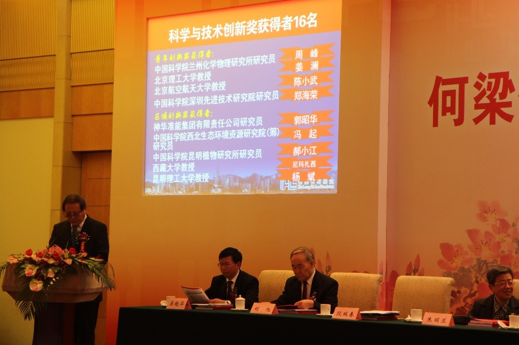 国务院副总理刘延东同志致函热烈祝贺本次颁奖大会的召开,并代表国务院向获奖科学家表示衷心祝贺。全国人大常委会张宝文副委员长,全国政协副主席、科技部部长万钢同志亲临大会指导并致辞,评选委员会主任朱丽兰代表评选委员会做何梁何利基金2017年度评选工作报告。