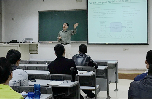 日前,bb贝博艾弗森官方网站机械与车辆学院邀请美国密歇根州立大学朱国明教授为研究生授课并开展学术交流。朱国明教授是密西根州立大学双跨机械工程学院和电气与计算机工程学院的教授,在MSU 的教学工作包括本科与研究生的控制课程教学,其主要研究工作包括内燃机闭环燃烧控制,系统建模与辨识,混合动力系统控制和优化等,他在控制理论、发动机诊断、燃烧控制相关领域拥有超过33年的研究经验。朱国明教授现为SAE和ASME院士,也是bb贝博艾弗森官方网站新能源引智基地的智库专家和客座教授。