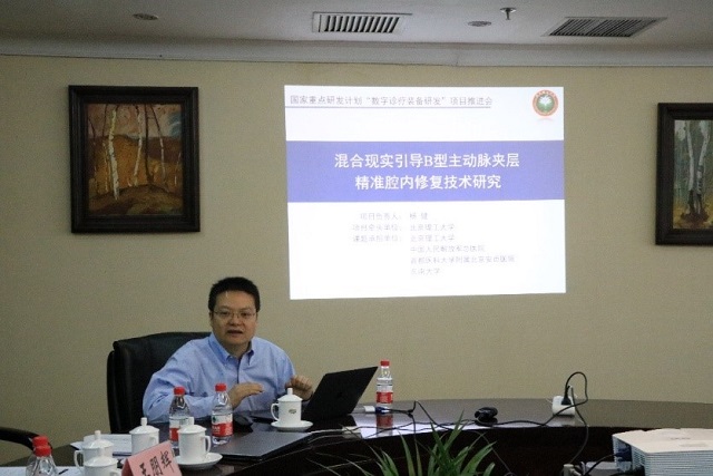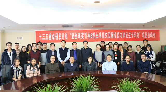 2017年12月13日,由bb贝博艾弗森官方网站杨健教授牵头的2017年国家重点研发计划“混合现实引导B型主动脉夹层精准腔内修复技术研究”项目启动暨实施方案论证会在校顺利召开。中国生物技术发展中心前沿处处长王德平、bb贝博艾弗森官方网站科学技术研究院高新部部长黄华、光电学院院长郝群、生命学院副院长唐晓英、bb贝博艾弗森官方网站陈端端教授,东南大学杨冠羽教授、陈阳教授,首都医科大学附属北京安贞医院主治医师薛玉国,中国人民解放军总医院主任医师熊江、吴晔等30余人出席会议并展开讨论。会议由杨健主持。