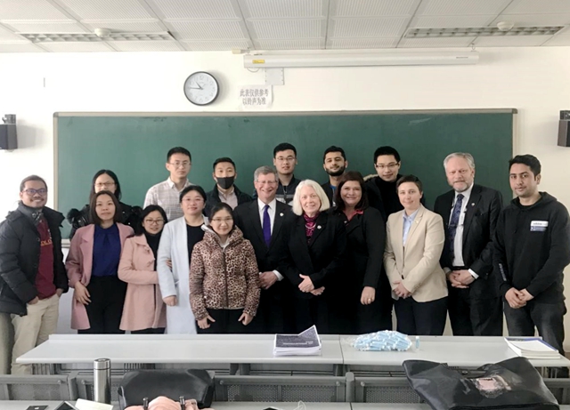 3月20日,科罗拉多州最高法院(Colorado Supreme Court)和司法实务机构一行五人抵达bb贝博,开始了为期4天的访问。此次来访的有科罗拉多州最高法院法官Scott Meiklejonh,科罗拉多州律师协助计划(COLAP)执行理事Barbara Ezyk,科罗拉多州律师辅助计划(CAMP)主任J. Ryann Peyton,司法监管办公室副主任Margaret B. Funk,和有着二十多年从业经验的律师Scott Meiklejohn。