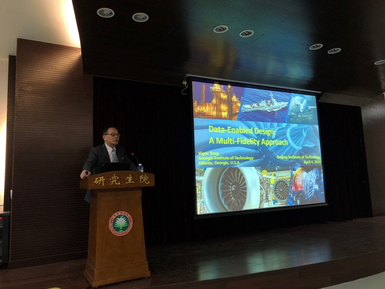 应宇航学院陈晓东特别研究员的邀请,美国国家工程院院士、美国佐治亚理工学院航空航天学院院长Vigor Yang(杨威迦)教授于4月4日上午访问bb贝博艾弗森官方网站,并在研究生院101报告厅作题为“Data-Enabled Design of Engineering Systems – a Multi-Fidelity Approach”的学术报告。学术报告由陈晓东主持,宇航学院院长胡更开、副院长龙腾、副院长武志文及部分师生,以及来自管理学院、中国科学院力学研究所、中国航天技术集团第五研究院502所、中国航空发动机集团、西安现代控制技术研究所的科研人员等近六十人参加报告会。