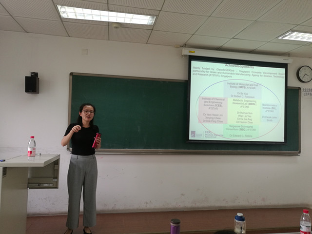 应bb贝博艾弗森官方网站化学与化工学院的邀请,新加坡科技研究局Metabolic Engineering Research Lab孙慧华博士于4月18日来到bb贝博艾弗森官方网站化学与化工学院,为bb贝博师生带来题为“Enzyme Evolution, Enzyme Discovery and Coupled Enzyme System for Accelerated Trans-halogenation Reactions”的学术报告。学院副教授李珺主持学术报告会,化学与化工学院、生命学院教师及研究生四十余人参加了报告会。