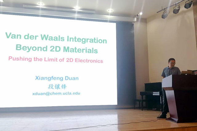 段镶锋教授作题为“Van der Waals Integration beyond 2D Materials-Pushing the Limit of 2D Electronics”的学术报告。他提出利用不同二维材料通过van der Waals分子间作用力构筑新型高效微纳器件的理念,展示了近两年发表于Nature和Science等期刊的研究成果。报告深入浅出,并与在场师生进行了热烈的讨论和交流。他也为材料学院的材料化学专业全英文教学、研究生国际化培养进行了指导。对提升我校新材料前沿研究国际交流、国际化人才培养等起到了很大的推动作用。