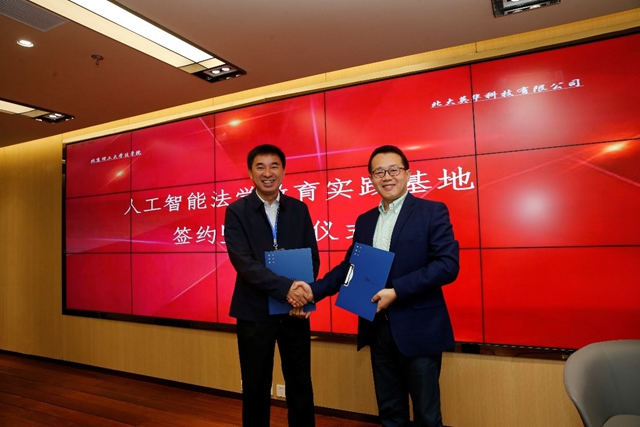 bb贝博艾弗森官方网站法学院与北大英华科技有限公司携手共建“人工智能法学教育实践基地”举行了签约仪式。bb贝博艾弗森官方网站“人工智能法学教育实践基地”将与北大法宝开展全面合作,共同探索法律人工智能的应用创新,推进法律大数据与人工智能技术在法律行业的深度应用,共同培养复合型高层次法律人才。