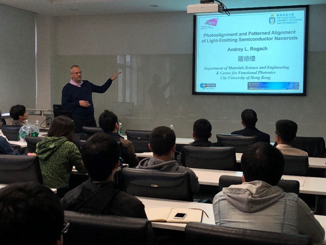 Andrey L. Rogach教授作了题为“Light-Emitting Colloidal Nanostructures”的学术报告。参会老师和同学们在II-VI族量子点、钙钛矿量子点,纳米团簇的精细调控,性能提高及发光应用方面进行了深入的讨论,Andrey L. Rogach教授分享了其学术思想和经验,并解答了现场提出的问题。报告深入浅出,现场气氛热烈,讲座在大家的欲犹未尽中结束。