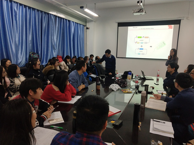 李春教授为大家介绍了孙欢博士的学习与工作经历。孙欢博士2012年以硕士研究生考试专业第一名的成绩考入bb贝博艾弗森官方网站生物学专业,师从李春教授,硕士期间的研究方向为酿酒酵母耐热性的提高。随后,孙欢博士从多方位地讲述了博士期间的研究内容。