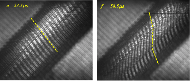 在冲击载荷下,绝热剪切带被认为是材料失效的重要机理之一。自从Zener和Hollomon提出绝热剪切局部过程是一种热-塑性失稳后,许多研究者认为绝热剪切带是由于材料热软化与应变/应变率硬化之间的竞争导致的。此外,剪切带内的材料再结晶表明绝热剪切带形成伴随着温度上升。因此,目前大部分学者认为温度上升是导致绝热剪切带形成的主要因素。然而,这一普遍接受的认识还未得到实验验证,主要由于两方面难题亟待解决:一是绝热剪切对测温仪器提出“两高一宽”的要求,即高时间分辨(微秒级)、高空间分辨(十微米级)、宽测温区间(近千度);另一方面,需要搭建微秒级同步红外测温和光学测变形的实验平台,才能揭示绝热剪切带形成和温度升高两者之间的因果关系。