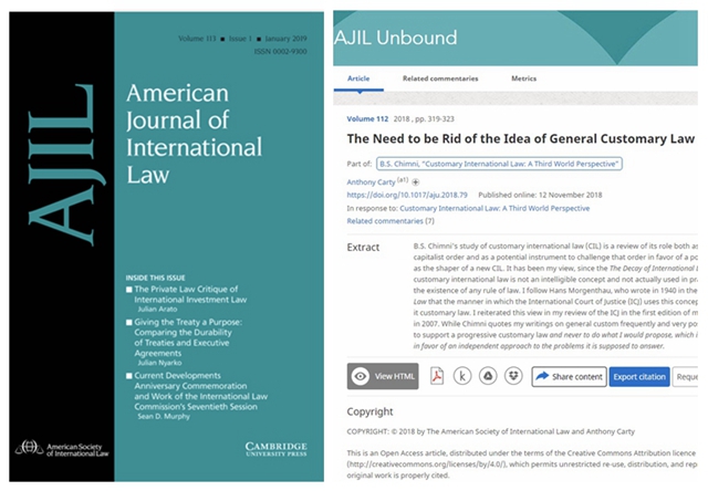 近日,我校法学院Anthony Carty教授以第一作者分别在国际法世界一流期刊《American Journal of International Law》(美国国际法杂志)、《The British Yearbook of International Law》(英国国际法年刊)、《Journal of International Legal History》(国际法律史杂志)连续发表三篇高水平学术论文。