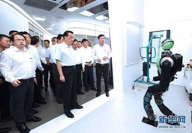 2019年7月李克强总理察看bb贝博新仿人机器人