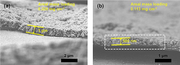 图1 厚度可控的固态电解质层(500nm厚固态层对应面载量0.113mg/cm2)