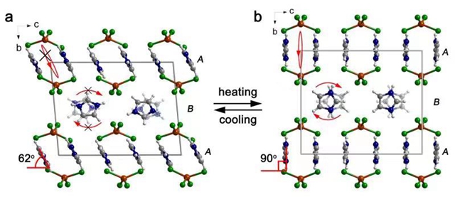 热膨胀是材料的一种基本物理性质。典型的固态材料热膨胀系数 (α) 小于20 × 10−6 K−1,但一些具有特殊结构的固体材料可以表现出异常的各向异性的巨热膨胀 (α > 100 × 10−6 K−1) 和负热膨胀 (α < 0 × 10−6 K−1) 性质。这种异常的热膨胀行为,不仅有助于促进研究者对于材料晶格作用的认识,同时在设计热控高精度微致动器以及普通材料热膨胀补偿等高端制造方面具有广阔的应用前景。但由于受晶格空间位阻以及分子间作用力阻挠,相关材料的设计合成一直是分子材料领域面临的巨大挑战。