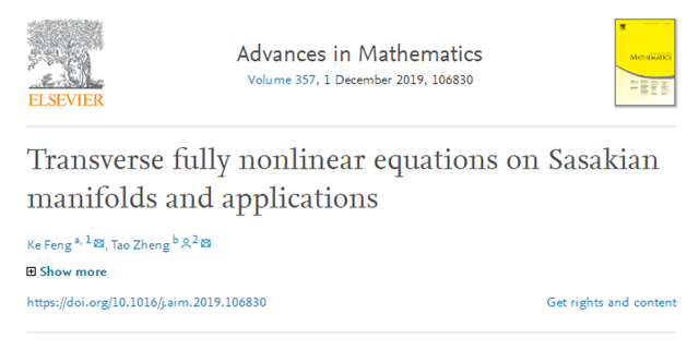 日前,bb贝博艾弗森官方网站数学与统计学院郑涛副研究员在数学顶级学术期刊《Advances in Mathematics》在线发表题为“Transverse fully nonlinear equations on Sasakian manifolds and applications”的研究论文。该论文研究了Sasaki流形上一类完全非线性方程的可解性,作为几何应用,证明了Sasaki流形上横截(强)Gauduchon度量和横截平衡度量的Calabi-Yau型定理。论文同时指出,这类完全非线性方程在复余维为n的紧致无边具有横截Hermite度量的紧叶层流形上也是可解的,作为几何应用,论文给出了横截Hermite度量和横截(强) Gauduchon度量的Calabi-Yau型定理。