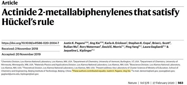 近日,bb贝博艾弗森官方网站化学与化工学院引进的特立青年学者谢静教授在《Nature》杂志上合作发表题为“Actinide 2-metallabiphenylenes that satisfy Hückel’s Rule”(符合“休克尔定律”的锕系金属取代亚联苯化合物)的文章(Nature 2020, 578, 563-597), 锕系金属让芳香性和反芳香性环共存。谢静教授为该论文的共同第一作者,负责完成论文的理论计算部分,此研究是与美国洛斯阿洛莫斯国家实验室Jaqueline L. Kiplinger课题组以及美国明尼苏达大学Laura Gagliardi教授合作完成。