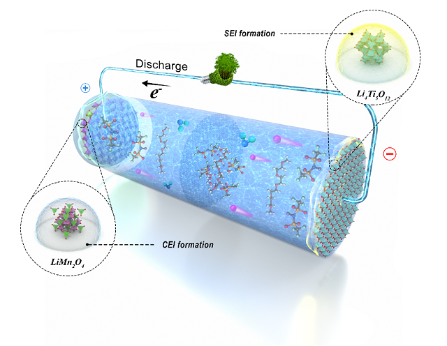 通常,理想的水系SEI膜应具有均匀的厚度、低溶解度、较好的柔韧性以及有效分离活性物质与电解质的能力。醚类溶剂,特别是TEGDME,由于具有较高的介电常数,可以实现电解质锂盐阴阳离子对的有效分离,提高锂盐在电解液中的浓度,从而获得较高的电导率。同时,醚类溶剂形成的SEI膜具有薄、致密、结构均匀等优点,因此可以作为有效的水系电解质溶剂组分之一,提高电池的稳定性。