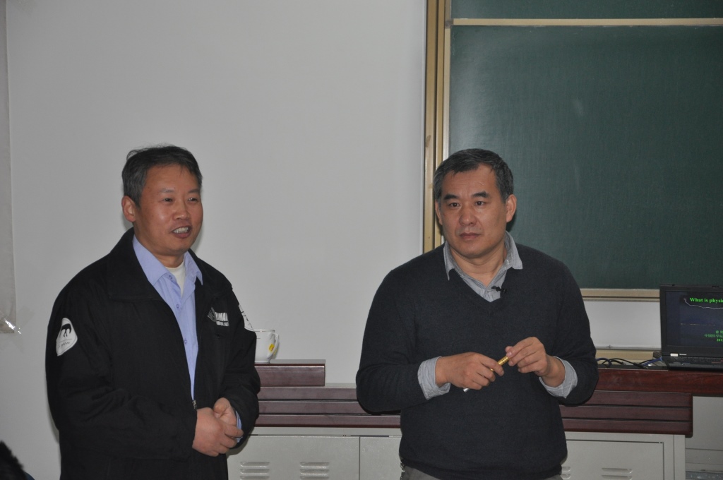 讲座开始,教授先向我们在场同学提了一个问题,也就是讲座的主题—“物理是什么?”。随后他展示了一些学者对物理的理解,奇怪的是,没有一个人的定义是相同的,引起了同学们的好奇。在好奇的气氛中,教授开始了他对物理的细致讲解,包括物理学的发展历史和未来的发展方向,让同学们学习的道路更加明确,也让同学们懂得了物理美丽要去自己体会和发现。最后,教授告诉同学们,学物理就是要怀着一颗好奇之心和一颗博爱之心,去发现世界、关爱世界,做一个幸福的人。会后,教授又对同学们提出来的在学习和生活的问题进行了耐心细致的回答。