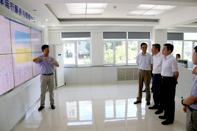 隋振江一行参观了电动车辆国家工程实验室。孙逢春介绍了实验室的基本建设情况,王震坡介绍了北京市电动车辆运行与监控中心的电动车辆安全保障工作和整体运行情况。