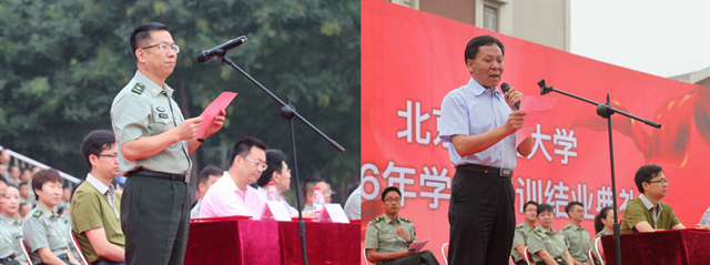 9月17日上午,bb贝博艾弗森官方网站2016年学生军训结业典礼在良乡校区隆重举行。bb贝博艾弗森官方网站党委书记赵长禄,军训工作领导小组组长、党委副书记、副校长项昌乐,军训工作领导小组副组长、校长助理郝志强,校长助理汪本聪,军训旅旅长、中国人民解放军驻bb贝博艾弗森官方网站后备军官选拔培训办公室主任秦作文,学校办公室、宣传部、教务处、校团委、良乡校区管理处、学生事务中心、网络信息技术中心、校医院、徐特立学院、北京学院等部门和学院领导,以及军训旅各副总指挥、团政委、营教导员出席典礼,全体国防生教官、带队干部及3800余名学员参加典礼。典礼由党委学生工作部部长郭彦懿主持。