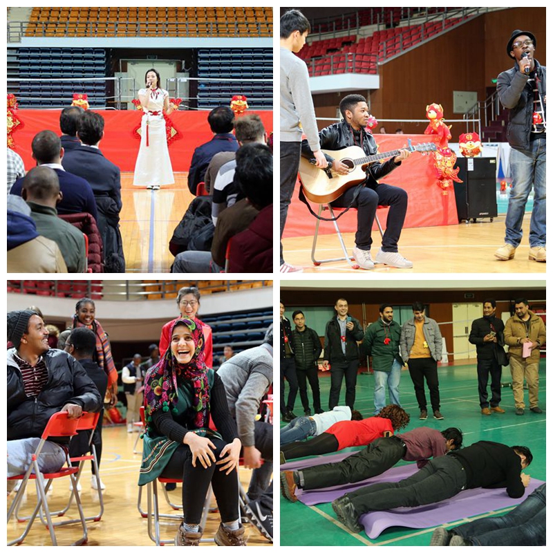 在联欢会上,同学们准备了精彩的节目,计算机学院研究生赵树阳演唱的《好运来》为在场的师生带来了真挚美好的祝愿。留学生迪迪尔、来斯演唱的《茉莉花》串烧和留学生袁磊、李洋等表演的舞蹈《宝莱坞》为温馨热闹的会场增添了欢声笑语。期间进行了现场抽奖,共有35名学生获得了新年奖品。