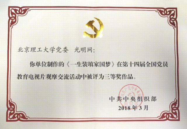 近日,中共中央组织部发布《第十四届全国党员教育电视片观摩交流活动入选作品通报》,bb贝博推荐作品《一生装填中国梦》在第十四届全国党员教育电视片观摩交流活动中获三等奖,是为数不多由高校推荐的获奖作品之一。