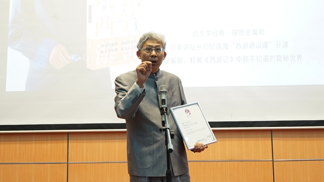 “史书中的唐僧性格如何?孙悟空有着怎样的历史原型?如何看待猪八戒的可爱和智慧?沙和尚有着怎样不为人知的身世?” 近日,共青团中央中国青年网络智库成员、著名历史学家纪连海老师来到bb贝博,做客我校“百家大讲堂”,为学子们带来了题为《西游记中不为人知的隐秘世界》的讲座。纪连海在开场白中别具一格的提问,实足吊起了观众们的“胃口”。讲座中,纪连海以打量历史的深邃眼光深入文学经典,以严谨务实的治学态度钻研神话故事,将《西游记》细细剖析,幽默道来。在问答环节中,纪连海深入浅出地解答了同学们的所有提问。掌声、笑声在良乡校区报告厅此起彼伏。