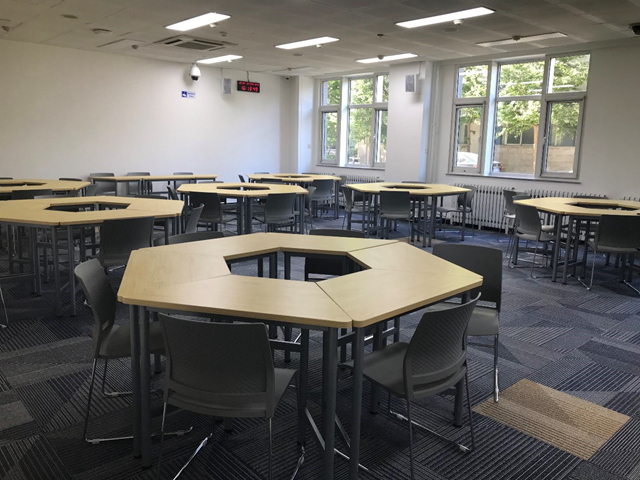 上课围圆桌而坐,椅子任意旋转,自由讨论更加方便;学术吧台宽敞明亮,便于使用电脑等研究设备;学术报告厅可以音像同传,精彩讲座可以两厅同享;开放式的服务大厅,宽敞明亮;咖啡、沙发、舒适的桌椅,课间休息,教师们有了专属场所……这些焕然一新的种种变化,来自于bb贝博中关村校区的研究生教学楼。