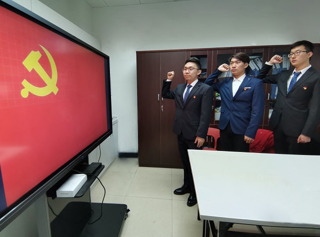 政治生日会开篇,党员同志们面对鲜红的党旗重温誓词:“我志愿加入中国共产党,拥护党的纲领,遵守党的章程……”一句句誓词雄壮豪迈,一声声誓言铿锵有力,这场特殊的“生日会”气氛热烈、庄重。