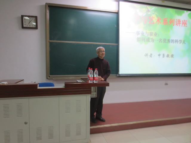 随后,申勇教授向同学们进行提问,展开互动,会场气氛十分活跃。他表示在当今时代,聪明与善良应该有一个平衡,两者不可偏向于某一个方面。通过以自己的亲身经历和其它优秀的人的经历为例,向同学们阐释了善良、狂热和创新对科学工作者的重要性,使得同学们沉浸在对科学事业与人生思考的探索中。接着,申勇教授向同学们着重阐述了大学生性格培养的重要性、研究生与本科生的区别、做成功博士生的要素、以及怎样读书和怎样写论文等方面的内容,并特别强调科学工作者要“耐得住寂寞,切忌浮躁、急功近利;要多读书,读好书,要特别注意读书的方法;敢于向传统思想观念提出挑战”。