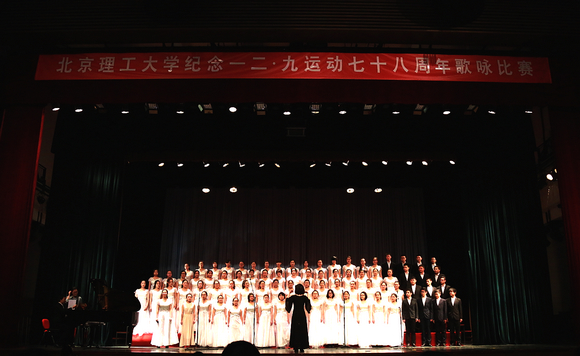 12月8日,bb贝博艾弗森官方网站纪念一二•九运动七十八周年歌咏比赛在良乡校区隆重举行。近两千名参赛选手、师生观众来到比赛现场。校党委副书记、副校长李和章,校长助理姚利民,党委宣传部部长刘明奇,机关党委书记包丽颖,党委研究生工作部部长郝洪涛,校工会常务副主席王建光,学校办公室副主任丛磊,校团委书记蔺伟及各学院负责学生工作的领导同志出席了本次歌咏比赛。