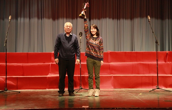 各参赛队伍的曲目唱毕,千余名师生起立,在艺术教育中心贺春华教授的指挥下,齐唱校歌。