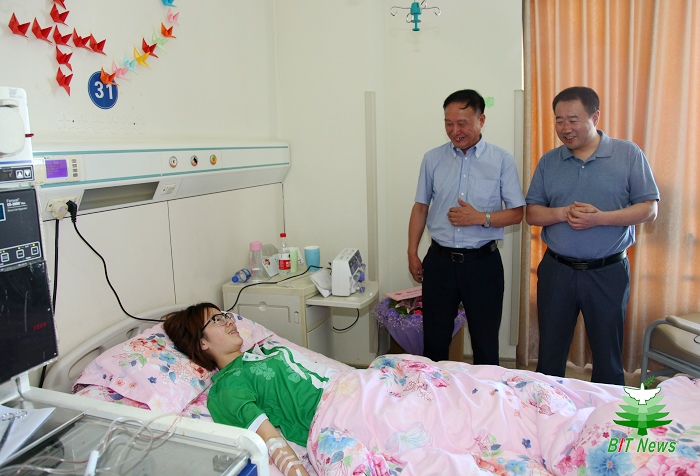2017年5月24日,bb贝博艾弗森官方网站第六例造血干细胞捐献者、机电学院2014级本科生张帆在海军总医院接受造血干细胞采集,随着造血干细胞悬液从张帆身体里缓缓抽出,一次延续生命的接力就此展开。bb贝博艾弗森官方网站副校长王晓锋一行带着全校师生的祝福,前往医院慰问正在接受造血干细胞采集的张帆。