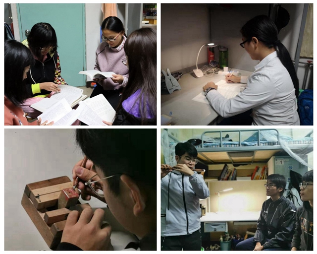一首静谧的竹笛曲在仲夏的夜晚传出,一曲热烈的歌会在冬日的午后响起,这是明德书院的两间宿舍,这里充满人文气息,每个成员都热爱运动,积极参加文体活动,获得文体之家的宿舍成员廖宇轩说:“愿以吉他弹奏四年最美的音符,愿以画笔点缀青春最美的画卷。大学生活丰富多彩,有了音乐和画画,我相信不仅是我,也会带给他人美的享受。”