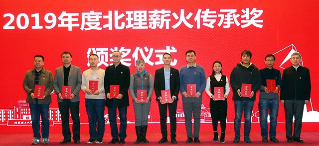 杨志宏为2019年度贝博薪火传承奖校友颁发证书。