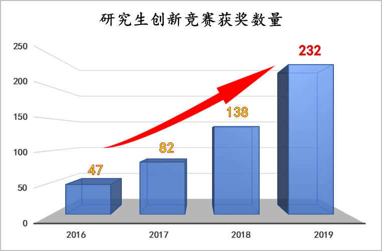 2019年,我校研究生参与各类科技创新活动并获省部级以上科技创新竞赛奖232项,创历史新高。全年研究生参与科技创新竞赛活动超过3000人次,一年级研究生参与科技创新的人数占比超过40%。