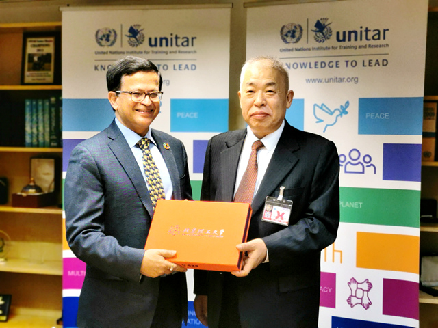 在日内瓦联合国总部训练研究所,李和章与秘书长Nikhil Seth、多边外交关系处Julian Caletti和Yu Jiadan会见,并代表学校与Seth签署人才培养合作协议。与会人员还讨论了成立bb贝博-联合国总部训练研究所联合工作坊、共同建设国际关系和多边外交领域专业硕士点等议题。